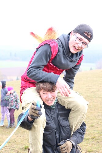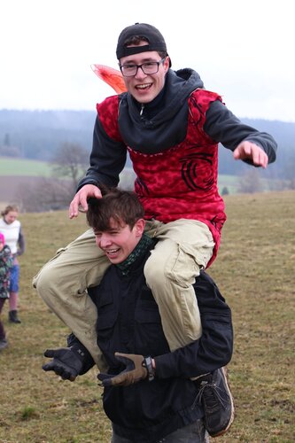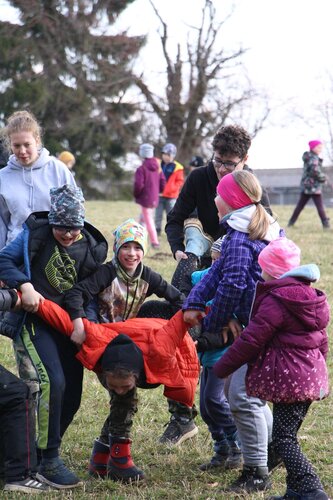 Další den ráno, po rozcvičce a snídani ve spacákách, jsme se ještě společně vydali do kostela. Poté se děti vydaly dát měsíc hvězdáři, kterého znaly čarodějnice. Po společných hrách – buldoci pro odvážnější a hopčí skok pro ty méně zapálené do boje – hvězdář vrátil měsíc zpět na oblohu.